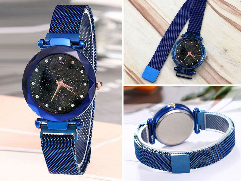 Product details of Women Mesh Magnet Buckle Starry Sky Luxury Fashion Analog Watches for Girls - 2020 Model - Magnetic Strip/Chain - College/Office